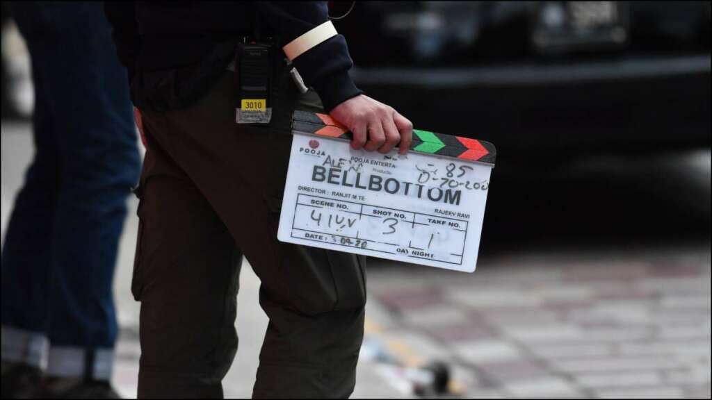 Clapperboard from ‘Bell Bottom’ can be seen. Which revealed that the shooting of scene number 3 is going on. And its the first take of it.