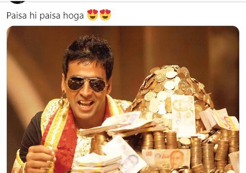 Let us tell you that the punchline that he has given is from his most liked 2006 comedy film Phir Hera Pheri. That also featured Sunil Shetty and Paresh Rawal in the pivotal role. This post of the Khiladi actor received more than 8000 comments within 30 minutes. Even a user straightway asked him saying “Sir, is this sign of Hera Pheri 3?” Another user commented, “Raju bhaiya mujhe bhi paise double karane hai.