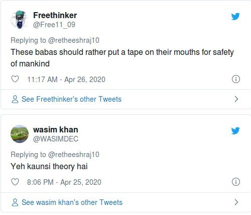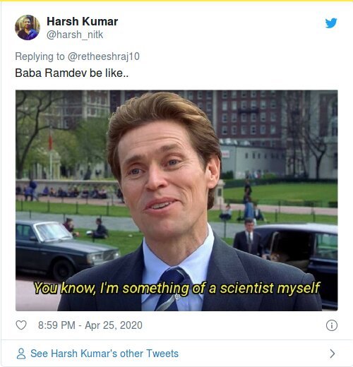 Anyway, Wanna know one more remedy by baba? haha, I knew it, you want to. Ok ok telling, do you know Baba Ramdev said if you put mustard oil through your nostrils, the virus gets washed away to your stomach where it gets killed by the acids. Not me and you, but see how netizens reacted on this: