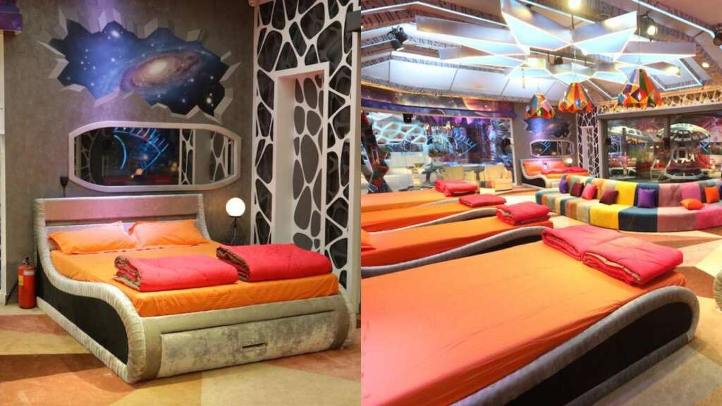 The bedroom is a mix of funky bright colors and metallic hues. Since the bedroom has often been a safe zone for the contestants where they relax. The beds have been designed to invoke coziness and forget all their worries. A huge metallic eye is put up on a wall that will the main attraction of the bedroom area.