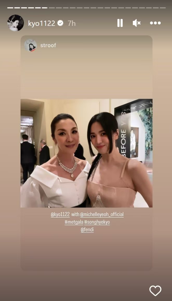 Song Hye Kyo clicked with actor Michelle Yeoh at Met Gala 2023.
