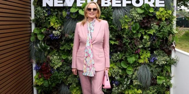 Kim Cattrall was spotted in a tidy pastel pink suit all decked up before the event.