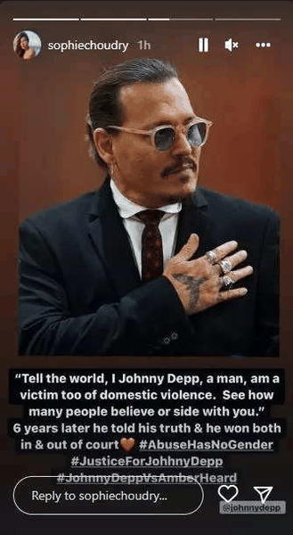 Not long after the verdict was dropped, Depp’s fans were seen expressing their happiness via social media. Bollywood celebrities Disha Patani and Sophie Choudry too posted on the side of Depp. Sophie took to her Instagram story and wrote, “Tell the world, I Johnny Depp, a man, am a victim too of domestic violence. See how many people believe or side with you.” 6 years later he told his truth & he won both in and out of court. #AbuseHasNoGender #JusticeForJohnnyDepp #JohnnyDeppVsAmberHeard.”
