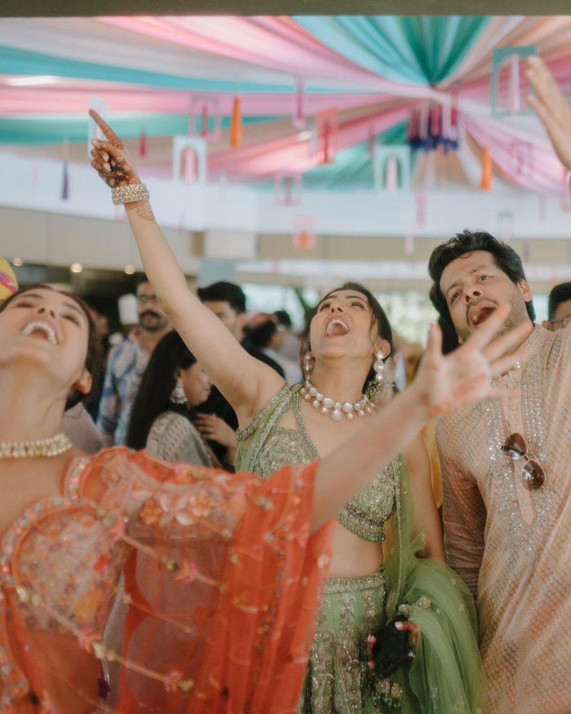 Kunal Thakur and Mukti Mohan on December 17, shared an Instagram post to give followers a glimpse into their Mehendi celebration. The series of images of the newlywed surfaced online. Showcasing family members henna designs on their hands. Dressed in matching yellow outfits, Mukti, Neeti Mohan, Shakti Mohan, Kunal Thakur, and Nihar Pandya are seen having a great time. The photos also capture a sweet moment with Neeti Mohan posing for an adorable picture with her son.
