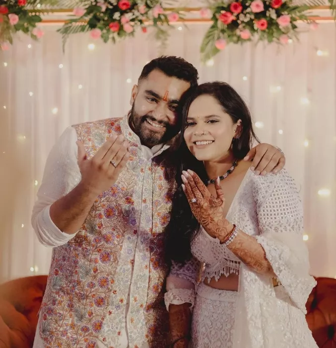 Social media influencer-turned-actor Viraj Ghelani announced his engagement to longtime girlfriend Palak Khimavat on December 14 via his Instagram account. In a joint post, the couple showed off their rings and shared photos from their engagement ceremony. They wrote, “Roomie for life,” along with a red heart and a ring emoji.