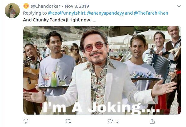 Coming to our story, once Ananya Panday compared her dad to Tony Stark and the conclusions were hilarious. Trolling started asap after she posted her picture on Twitter with Chunky Panday and Farah Khan. She wrote, “Posing with Tony Stark and the hottest principal EVER!!! Thank you for having us @TheFarahKhan #BackBenchers.”