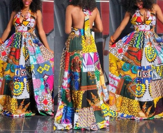 Try a classy maxi style patchwork outfit utterly suitable for a party or other informal gatherings. You can team it up with short jackets and funky accessories. And try heels for the best look with this.