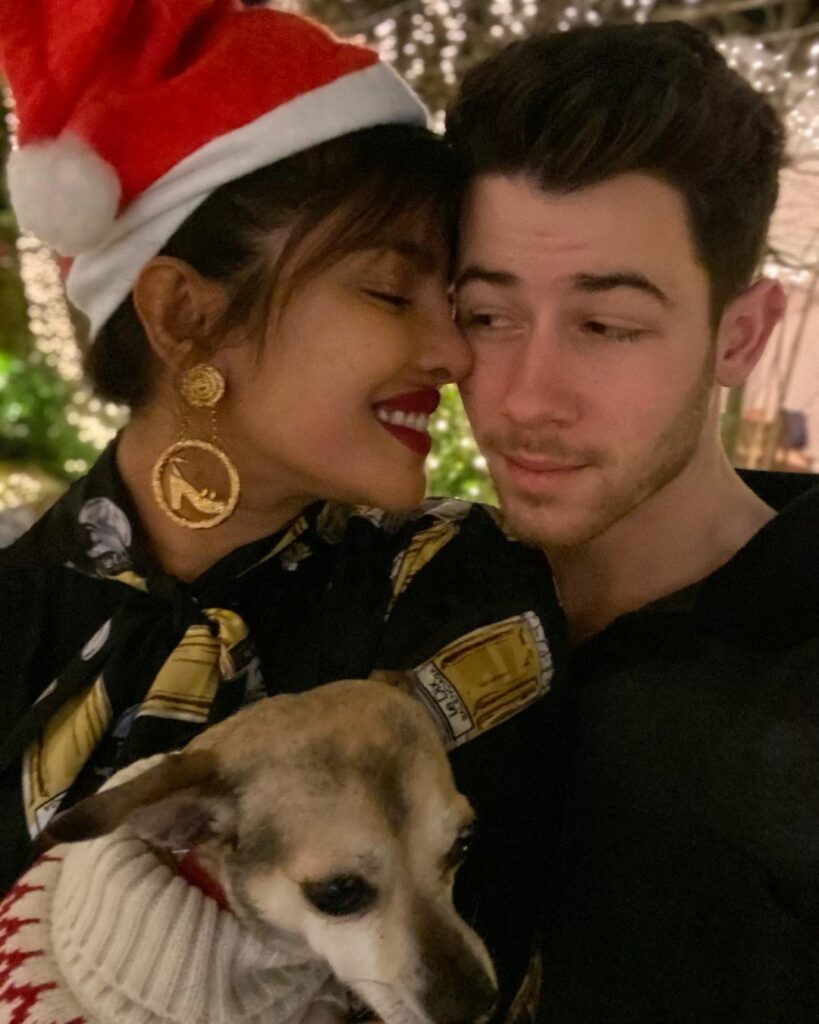 Priyanka Chopra never misses a chance when it comes to updating her fans about her personal and professional life. And once again on the occasion of Christmas, the actress took to her social media to share an adorable picture in which she was seen standing beside her hubby Nick Jonas. Captioning the post she wrote“Perfect. From our family to yours, happy holidays and a happy, healthy New Year.” Nick shared the same picture on his Instagram account, and in his caption wrote that they are missing their other dogs. “Merry Christmas everyone! Sending love to you and your loved ones! @pandathepunk and @ginothegerman mommy and daddy miss you pups!”