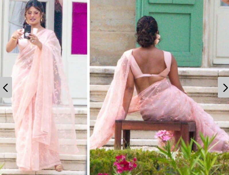 But what caught the attention was Priyanka Chopra didn’t wear western but Indian traditional clothes. She was donned in a light-pink Sabyasachi Saree whereas her husband Nick Jonas wore a black tuxedo.