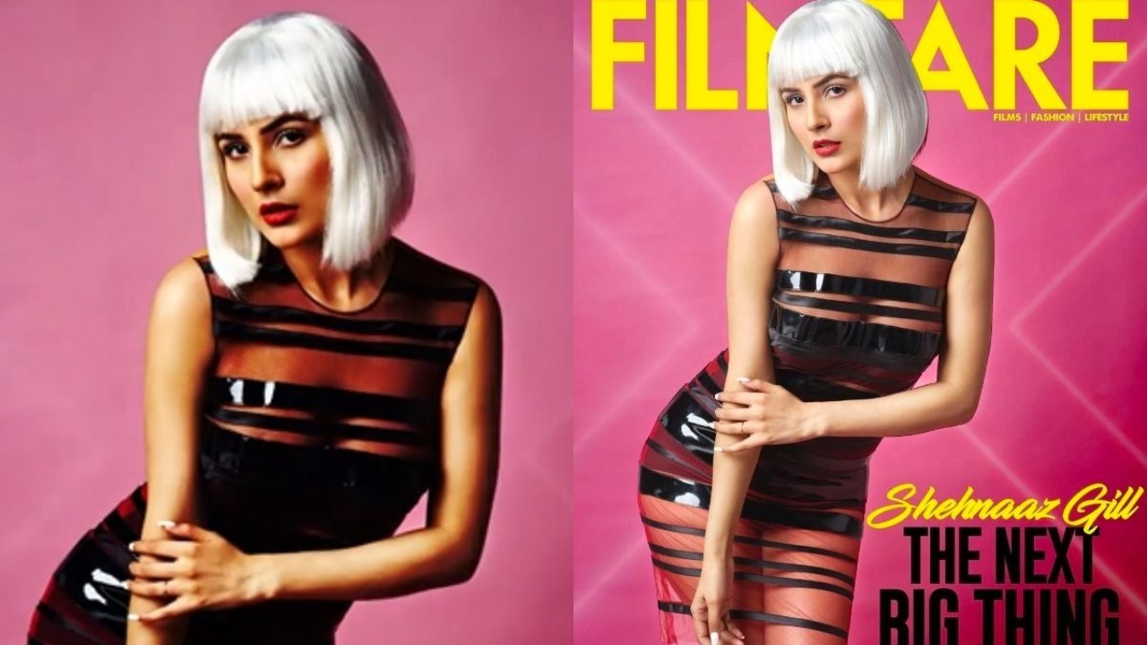 Shehnaaz gill recently took the internet by storm after she posted the latest picture of herself from the cover photo shoot of Film fare magazine. She was seen all clad up in a black and transparent striped dress. And teamed it with short hair white wig having bangs. Take a look at the picture below.