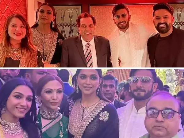 In one of the photos that surfaced online, Ranveer and Deepika posed beside Ginni Chatrath, Dharmendra, and comedian Kapil Sharma. Along with them, other guests were Salman Khan, Aamir Khan, and Anupam Kher.
