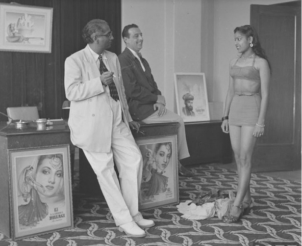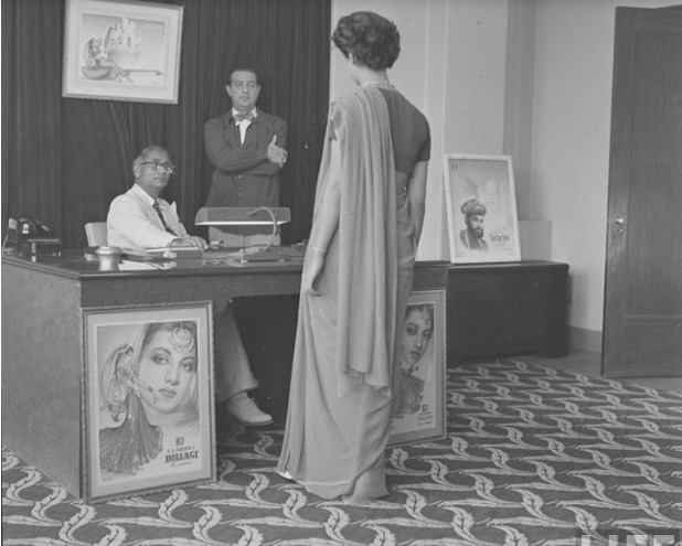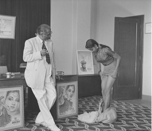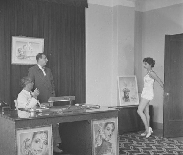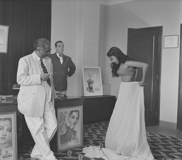 The photos shared are of a renowned director Abdul Rashid Kardar (1904–1989), who was known for directing almost 40 films of that era. like Shahjehan (1946), Dillagi (1949), Dulari (1949) and Dil Diya Dard Liya (1966), and many more. And he was seen taking the screen test of two young girls, who came to him. These old pictures will give you a closer look at the way screening was done at those times. Although it looks a bit sleazy, it’s better you decide what you feel about it.