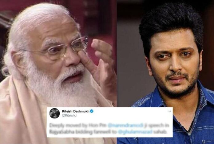 Riteish Deshmukh has tweeted that Prime Minister Narendra Modi is emotional. “I am impressed by the speech made by Prime Minister Narendra Modi when Ghulam Nabi Azad Saheb is retiring from the Rajya Sabha,” Riteish tweeted.