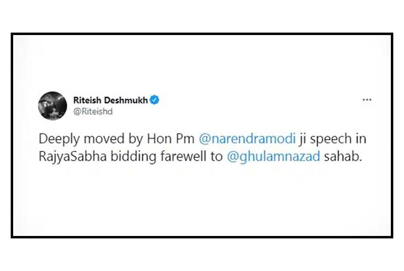 The country saw a different picture in the Rajya Sabha yesterday. There is an emotional atmosphere on various issues where there is a picture of confusion being reached by reaching the chair of the Speaker. After Prime Minister Narendra Modi’s speech, the House was found to be stunned. From the speech of the Prime Minister, the House saw the gentle man among Ghulam Nabi Azad. Prime Minister Modi also shed tears. After this speech of Modi, it is seen that there is a discussion about that tragic incident. Meanwhile, a tweet by actor Riteish Deshmukh is under discussion.