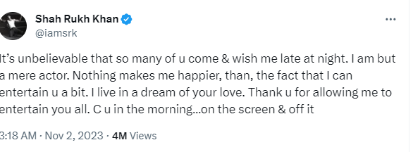 The ‘Pathaan’ actor treated his fans by waving at them and striking his signature pose with outstretched arms, leaving his admirers spellbound. Fans from various cities arrived early in the morning, eager to express their love and good wishes in their own unique ways. Many came bearing gifts, sweets, t-shirts, and enormous posters of SRK as tokens of their affection. The actor also took to his social media platform to thank his fans.