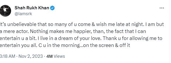 Screengrab of Shah Rukh Khan’s post