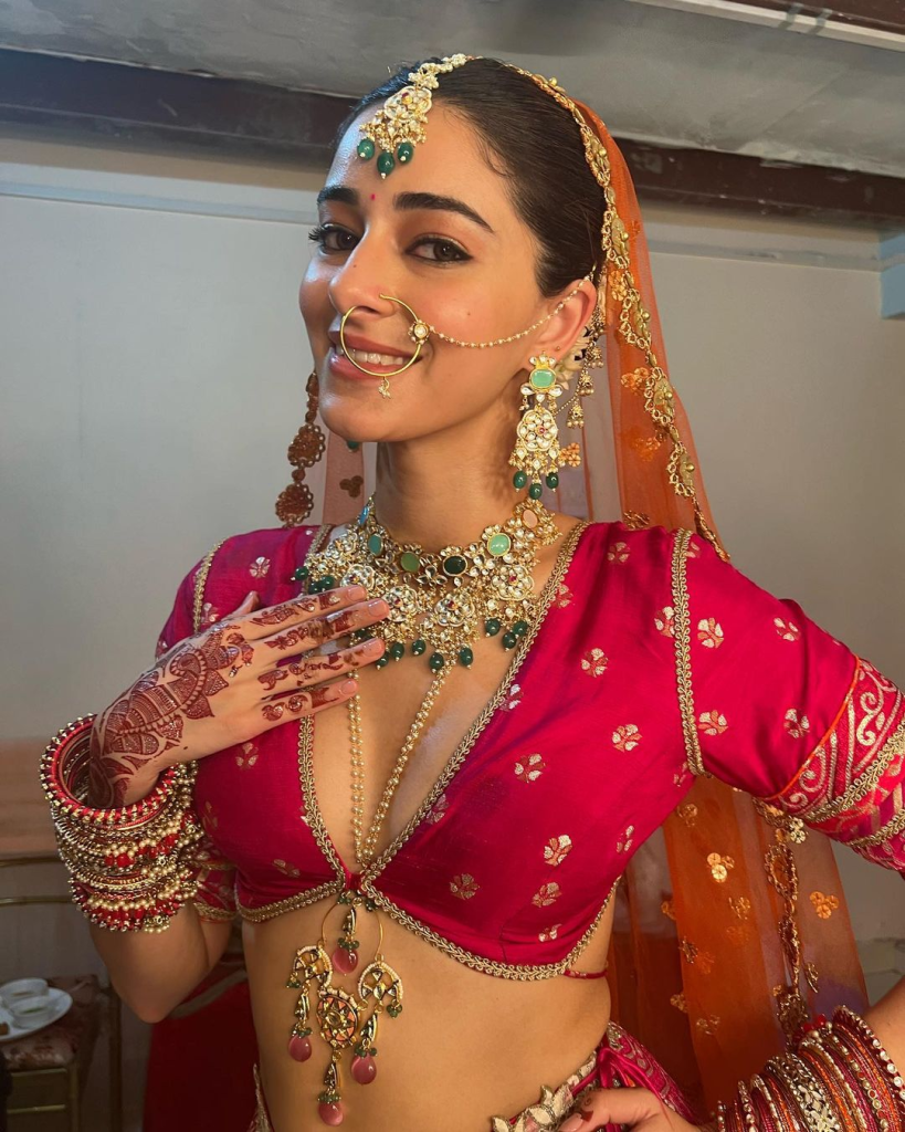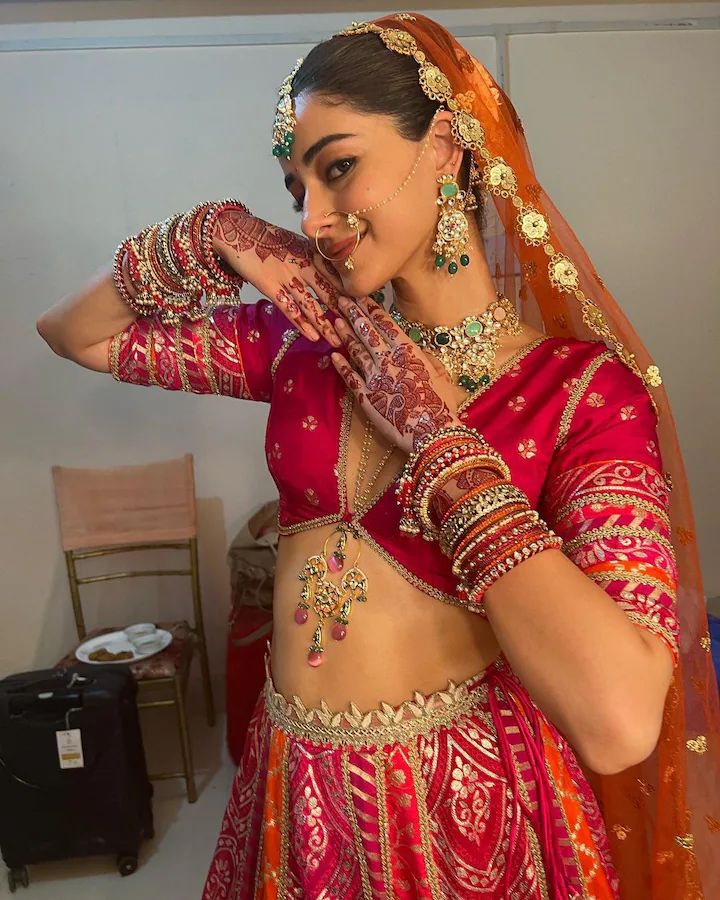 What kind of attire does the Gen Z bride prefer for her wedding? Bold elements are making the cut, according to Ananya Panday, as seen by her role as a bride in Dream Girl 2 (2023). The diva made a strong case for daring color combinations, provocative designs, and creative layering with her plunging neckline and translucent orange dupatta contrasted with the fuchsia ensemble.