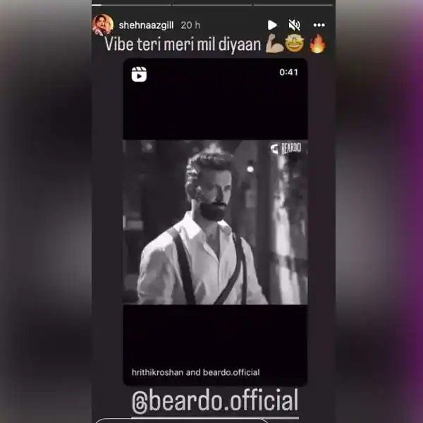 Hrithik Roshan recently posted a video on his social media in Beard Look. Hrithik Roshan‘s dashing and stylish look as always was seen in this video. Shehnaaz waited no more after watching the video and the actress shared a screenshot of the video in her Instagram story section.