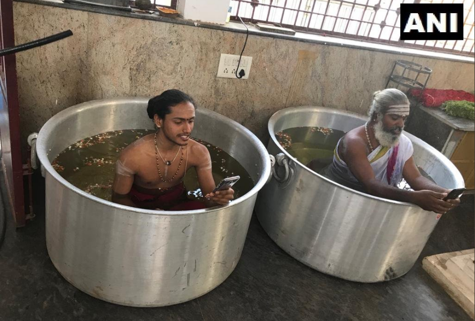 Relating to it, priests in Someshwara temple in Halasuru, Bengaluru conducted a special puja and pictures of the bizarre ritual which is now getting trolled on social media. It is not because of the Puja but in the photos shared on the internet the priests were seen sitting in two giant vessels filled with water, while another was seen performing the Hawan.