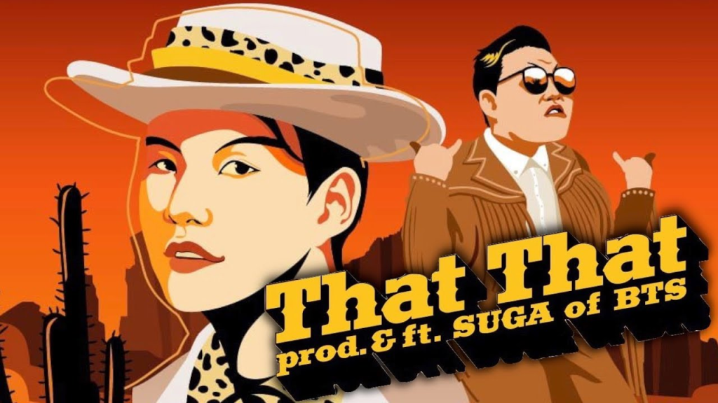 In the music video for That That, PSY celebrated the end of the COVID-19 pandemic while dressed in cowboy boots and set against a wild west landscape. The artists welcomed the post-pandemic milieu while expressing wonder and excitement.